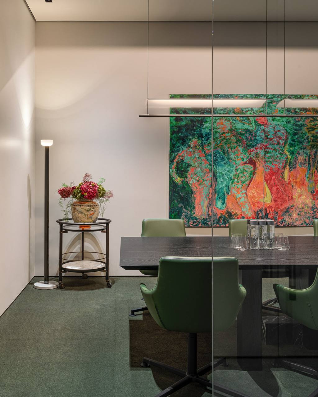 The decoration includes Italian furniture and lighting (Cassina, Flos, Foscarini, etc.), as well as items created specifically for the project. The space is complemented by art objects by contemporary artists. The sales house is part of the Vesper Tverskaya project and reflects the brand’s philosophy: architecture, design and culture in one place.